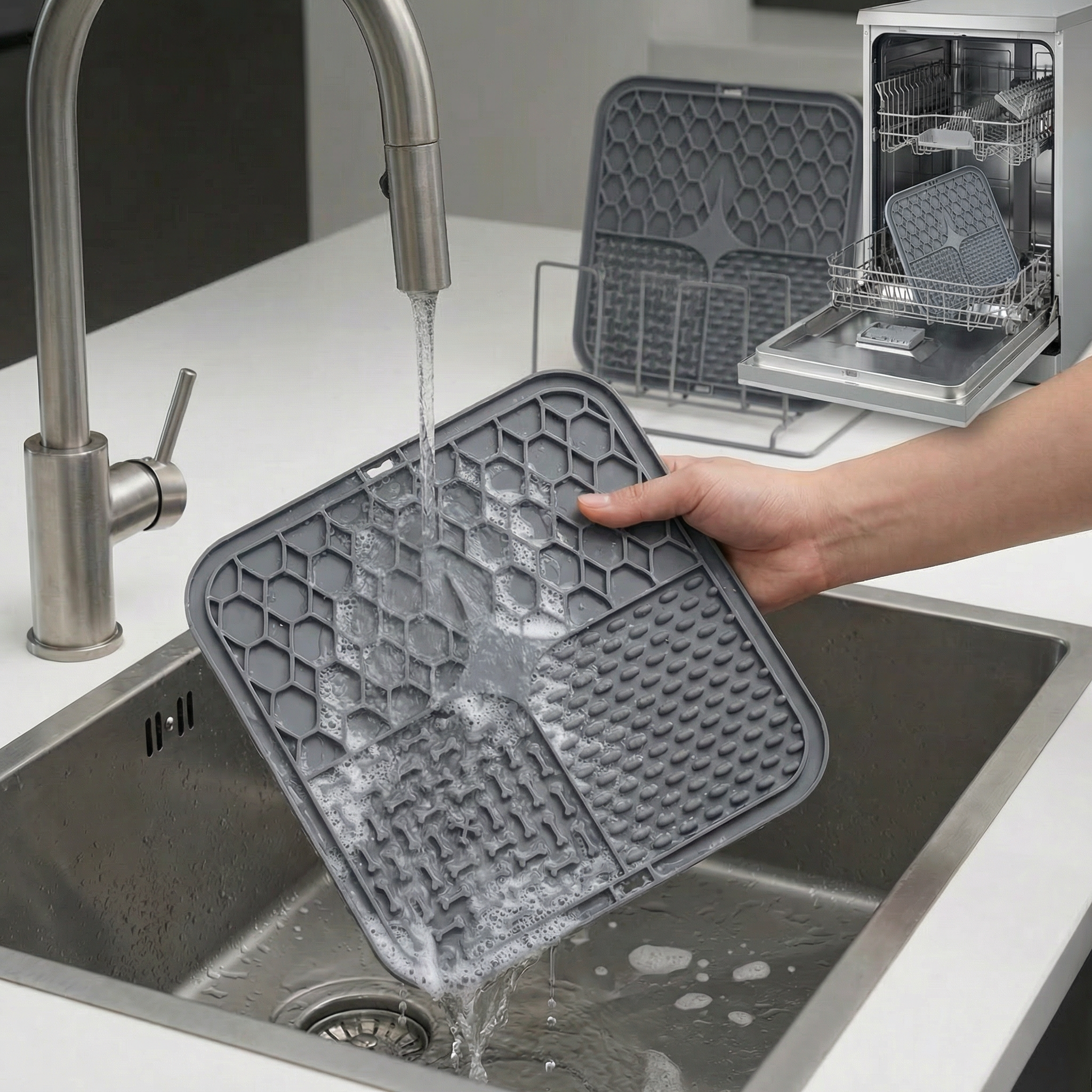 Gefertigt aus hochwertigem, tierfreundlichem Silikon. Langlebig, sicher und angenehm für sensible Hundenasen und Zungen.